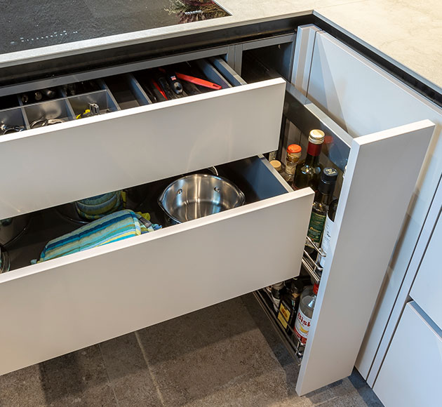 Wir wollen, dass Sie lange Zeit Freude an Ihren Möbeln haben und dafür müssen sie einwandfrei funktionieren. So verbauen wir aus Überzeugung Premium-Beschläge von Häfele.