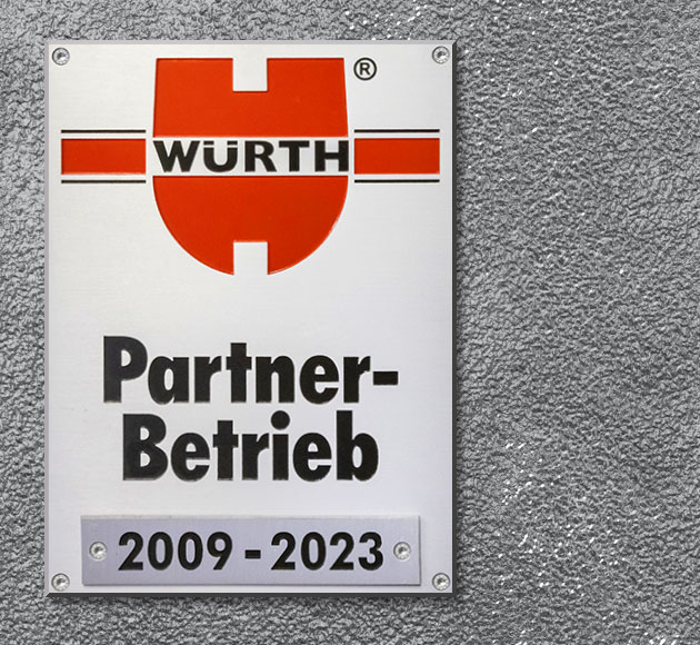 Wir sind zertifizierter Partnerbetrieb der Firma Würth und haben somit direkten Zugriff auf Verbrauchsmaterial, hochwertige Holzleime und Bauchemie sowie auf Schrauben, Befestigungstechnik und Beschläge aller Art.