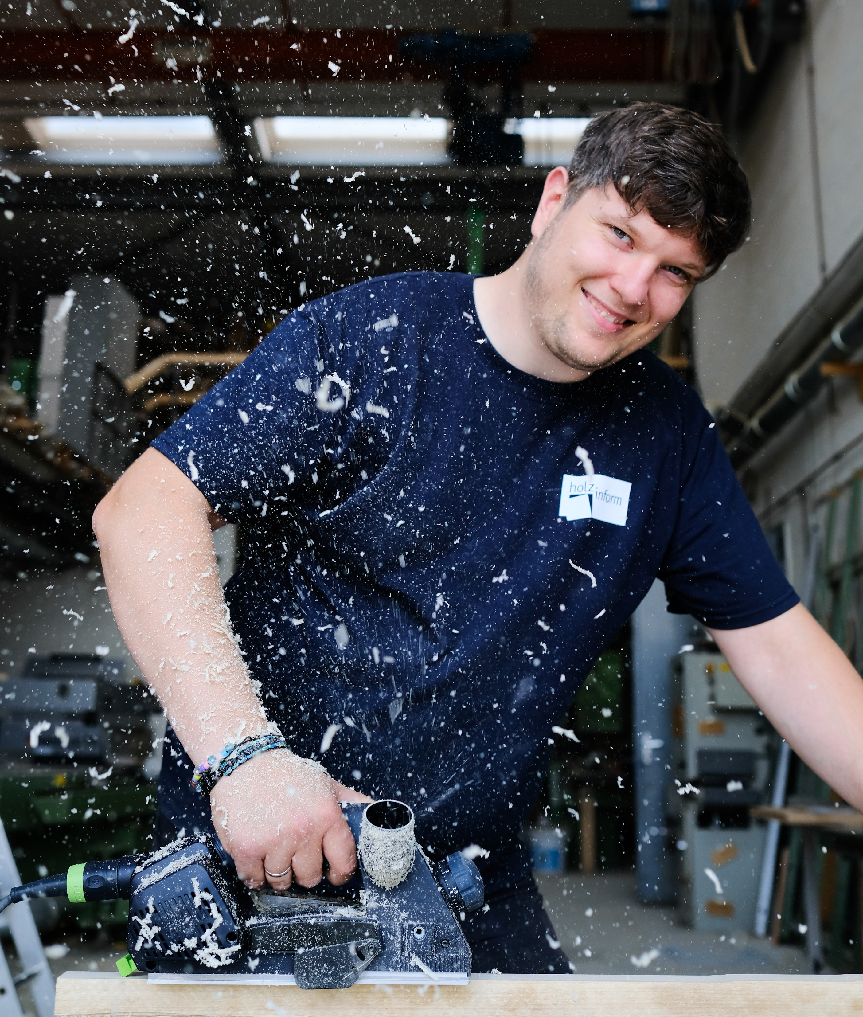 Inhaber und TischlermeisterSeit ich Möbeltischler bin, ist es mein Anspruch, das perfekte Möbel zu bauen — Möbel, die unseren Kunden nicht nur gefallen, sondern ihnen auch etwas bedeuten. Darum haben wir Holzinform gegründet.