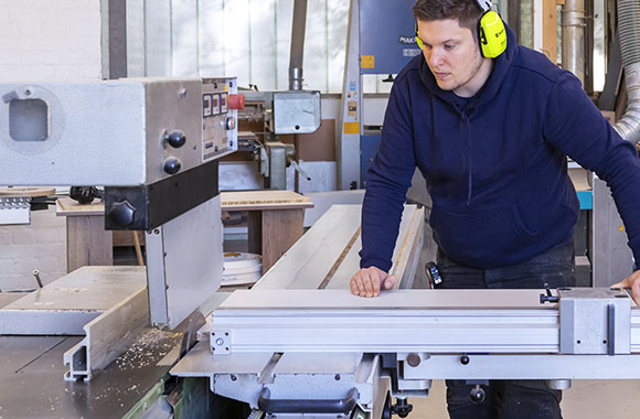 Ob beim Zuschnitt von großen Platten oder bei der Bearbeitung von Kanten erleichtern uns großkalibrige Maschinen die tägliche Arbeit.